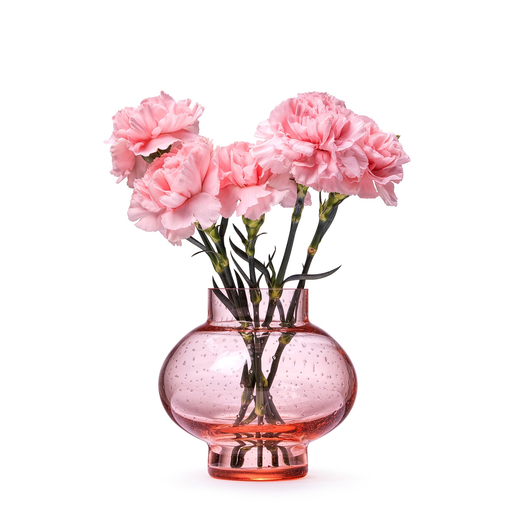 Beautiful In Flore Clara vase, small, in a light pink color. Our Clara vase is handmade in glass with characteristics of sparkling clarity and brilliance. All vases are handmade and therefore unique in color and appearance giving you a signature collectable piece.